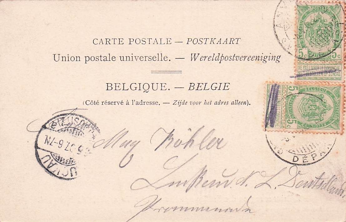 Die Postkarte zeigt die "Deutsche Turnhalle" des "Deutschen Turnvereins in Antwerpen", der 1882 gegründet wurde.