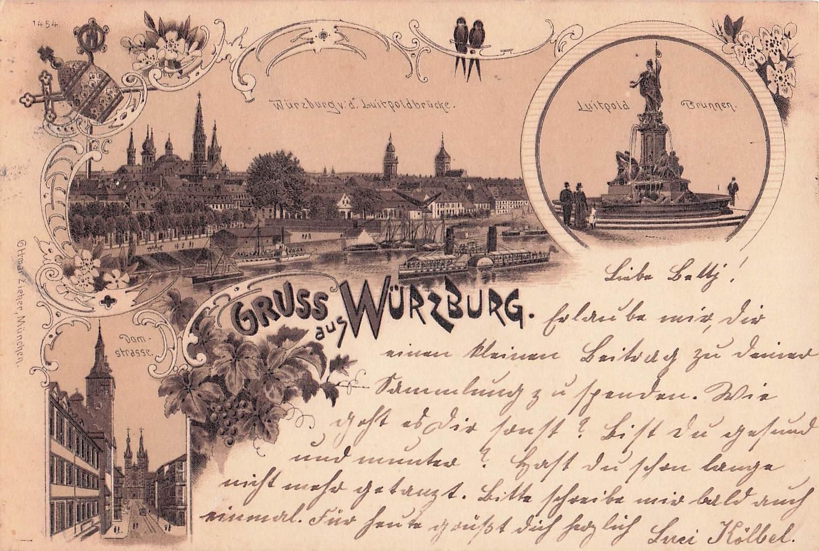 AK / Ansichtskarte Wuerzburg Luitpold Brunnen Luitpoldbruecke Domstrasse Kat. Wuerzburg