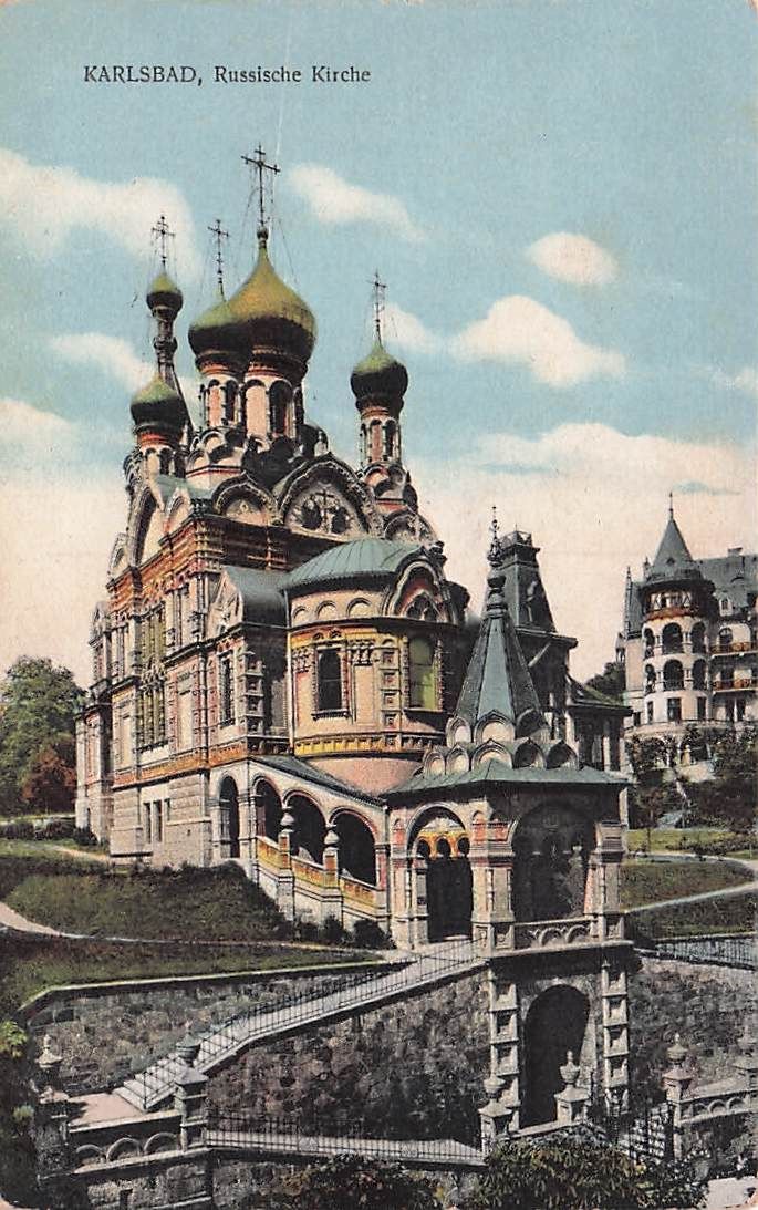 AK Karlsbad Russische Kirche 1918