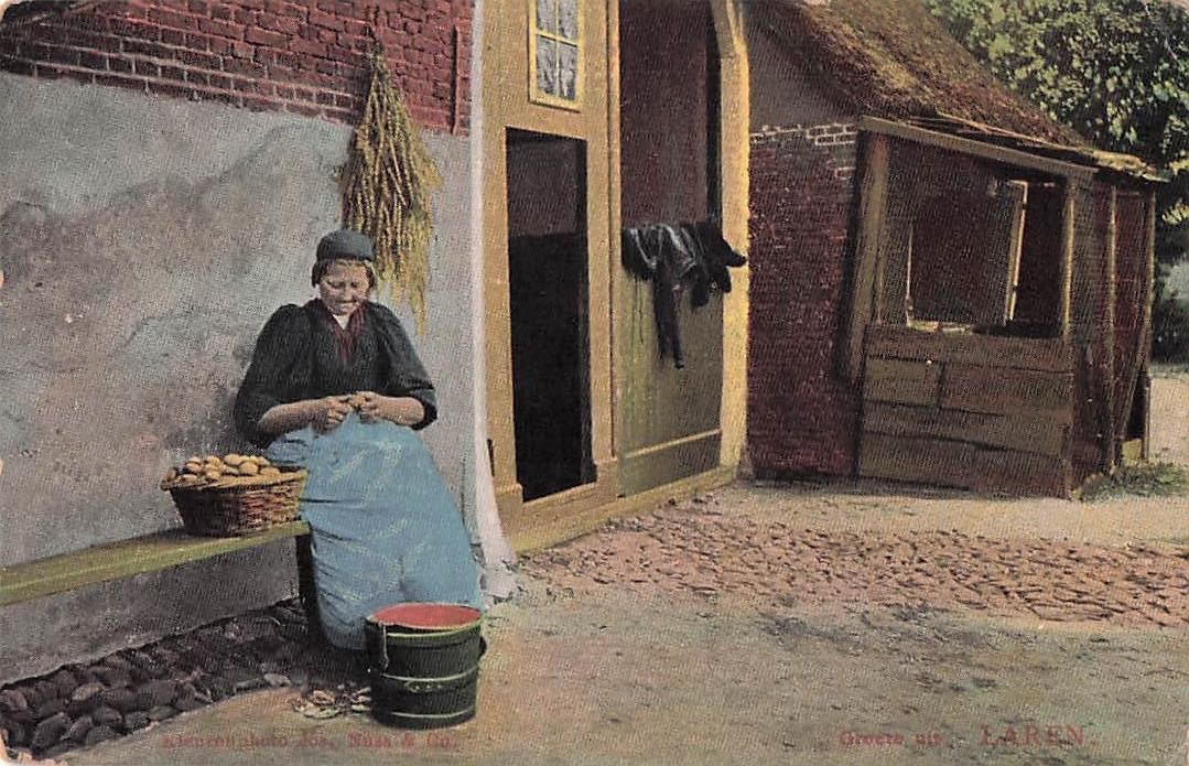 Ak Laren Nordholland Niederlande, Bäuerin beim Kartoffeln schälen