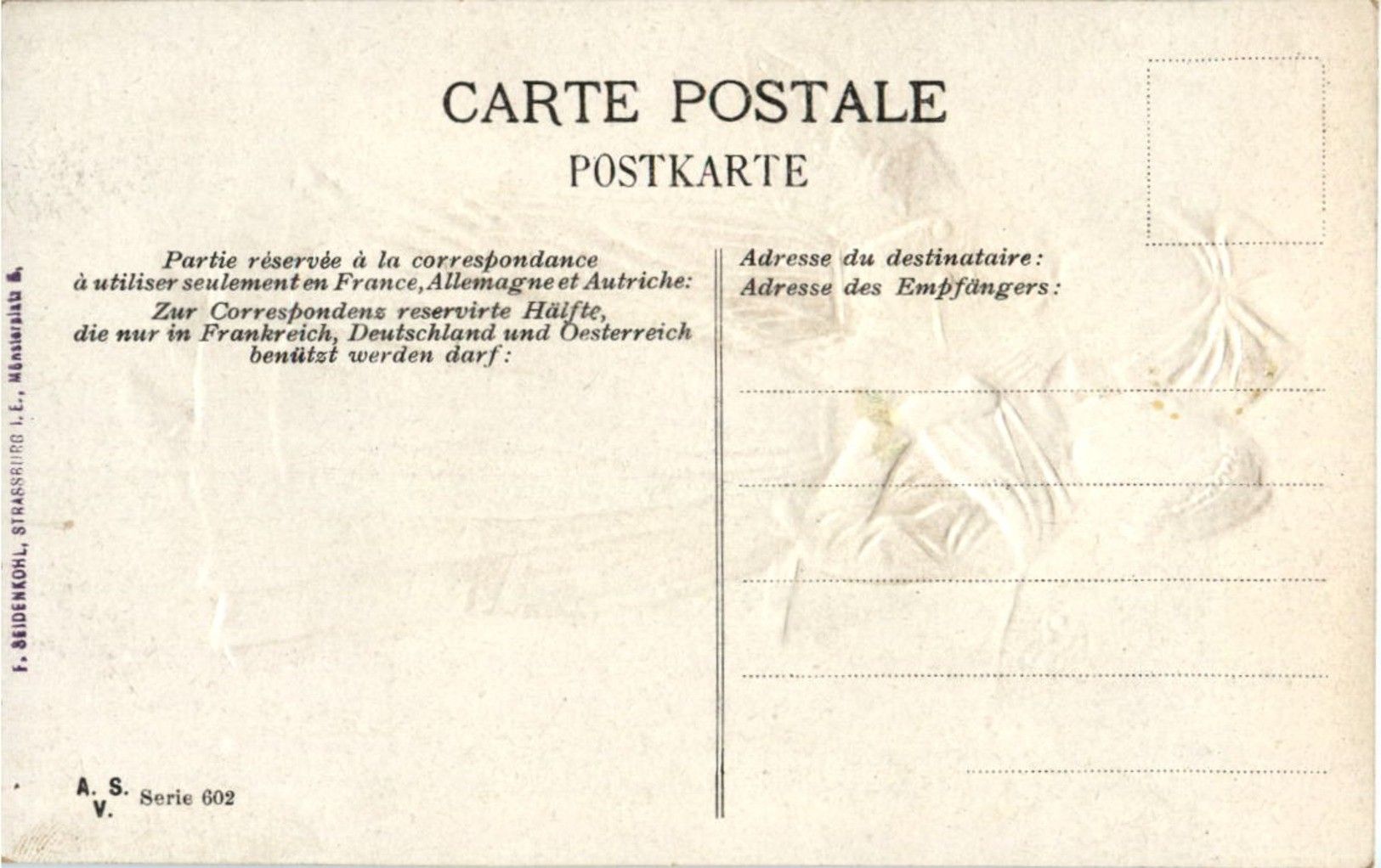 Alsacienne et Lorraine - Prägekarte mit Stoff