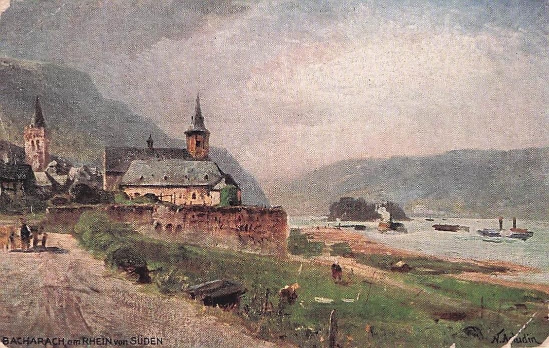 Ansichtskarte Bacharach Rhein Panorama Kuenstlerkarte Kat. Bacharach