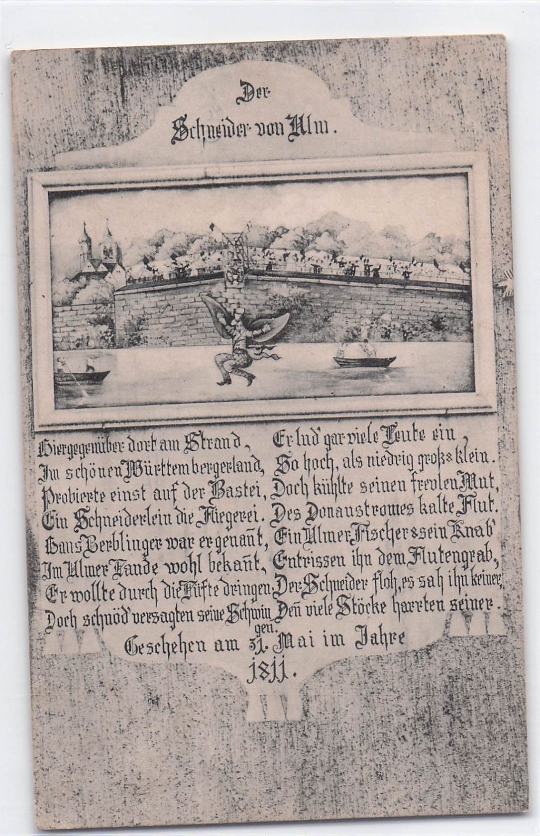 Ansichtskarte Ulm / Donau, Der Schneider von Ulm, Bild an Hauswand, Gedicht
