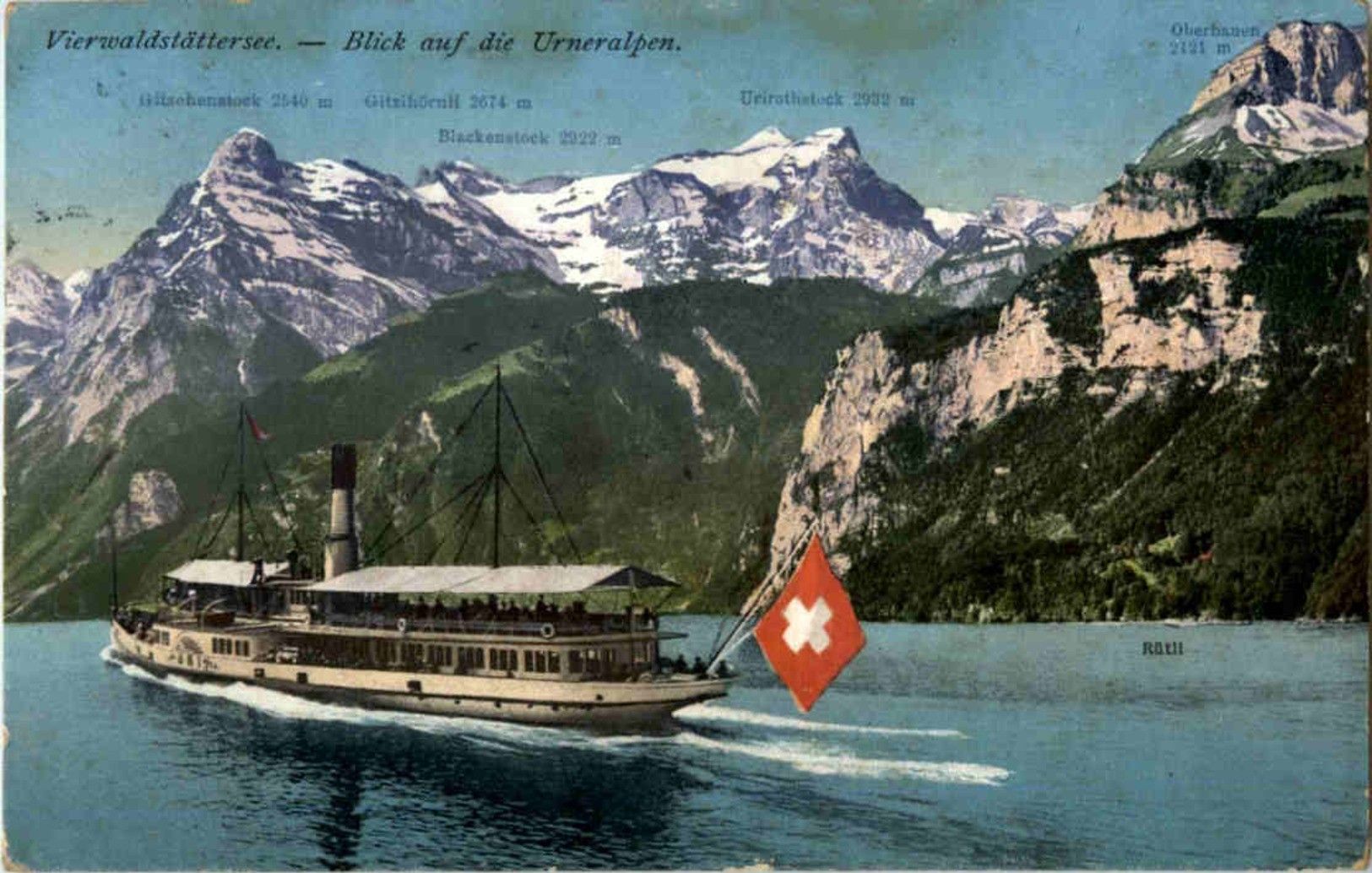 Blick auf die Urner Alpen mit Schiff
