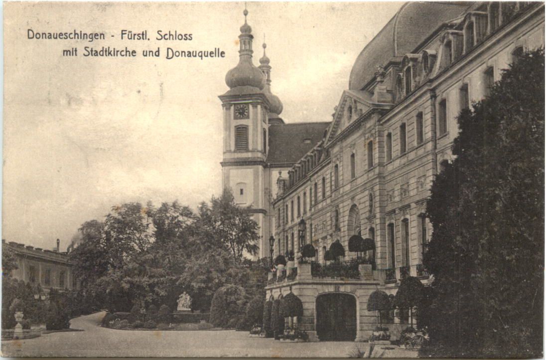Donaueschingen - Fürstl. Schloss mit Stadtkirche und Donauquelle