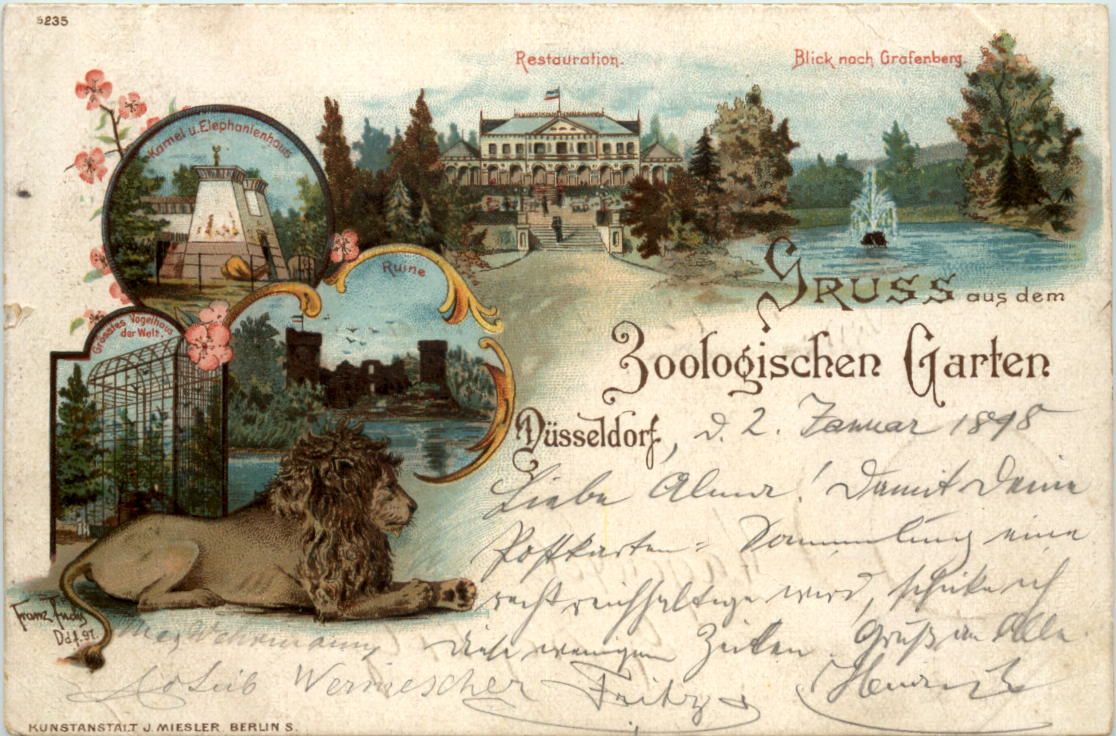 Düsseldorf - Gruss aus dem Zoologischen Garten - Litho