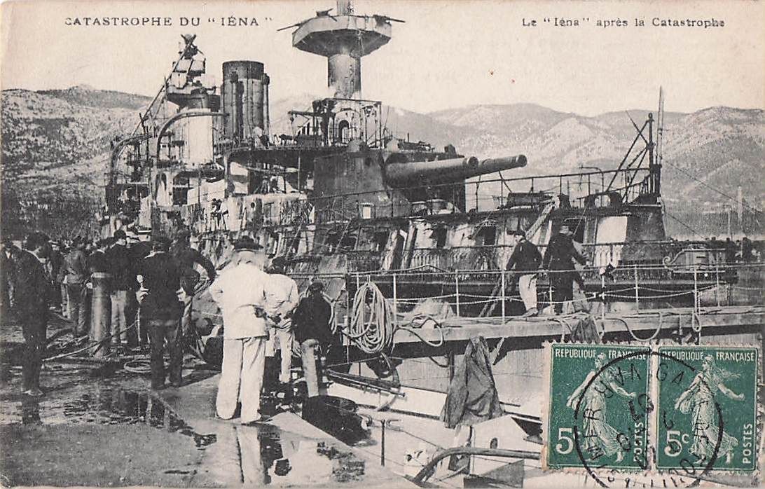 französische Schlachtschiff Iéna nach der Explosion und dem Brand in Toulon am 12. März 1907.