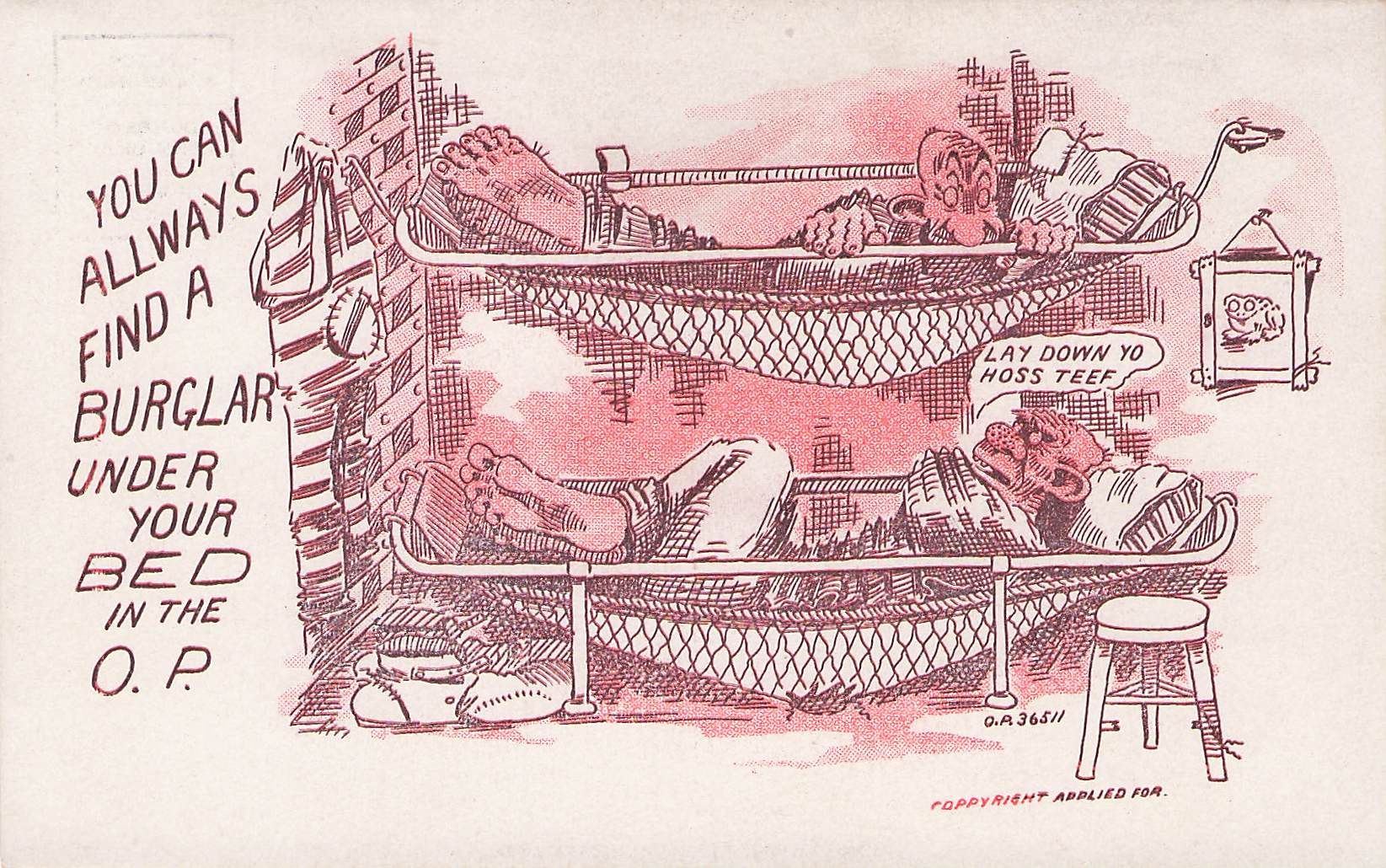 Gauner: Im OP-Gefängnis finden Sie immer einen Einbrecher unter Ihrem Bett. Postkarte