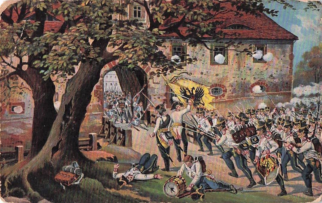 Das Schloß Dölltz Im Süden von Leipzig wird durch österreichische Infanterie gestürmt.