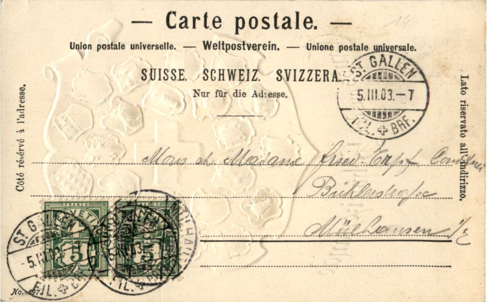 Gruss aus dem Schweizerlande - Prägekarte