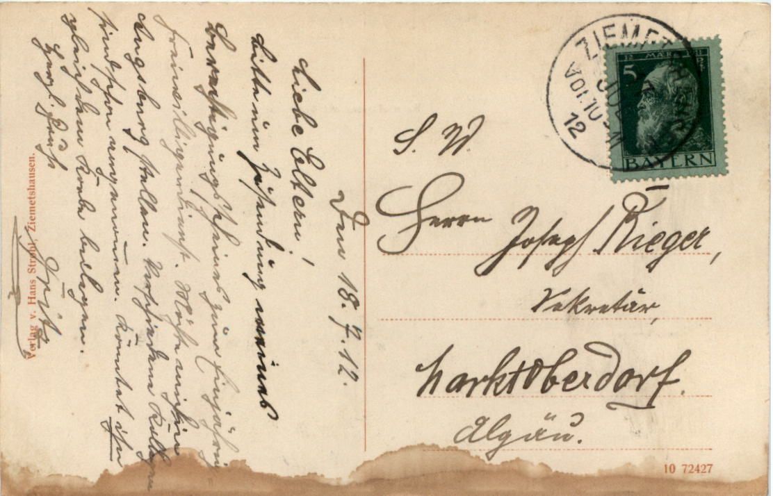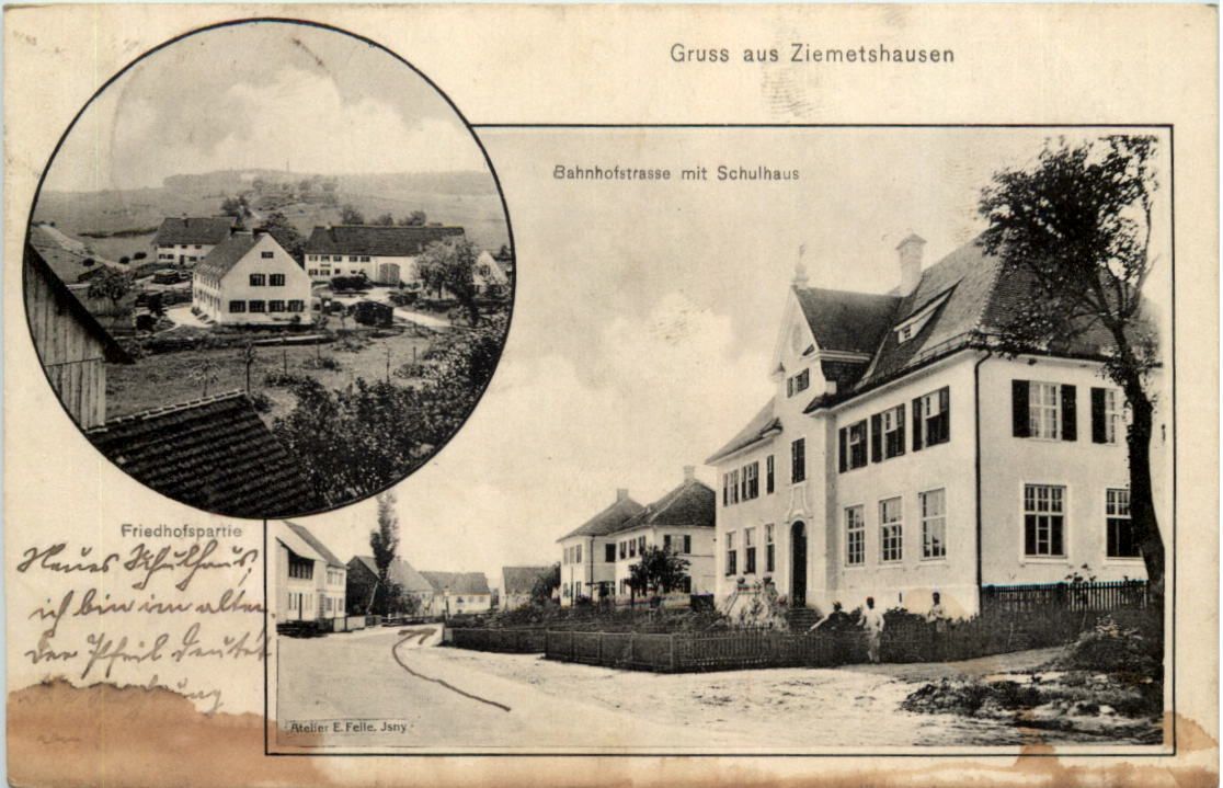 Gruss aus Ziemetshausen - Bahnhofstrasse - Künstler-AK Eugen Felle