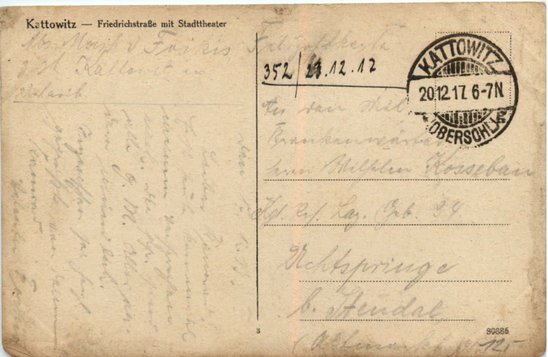 Kattowitz - Friedrichstrasse mit Stadttheater - Feldpost