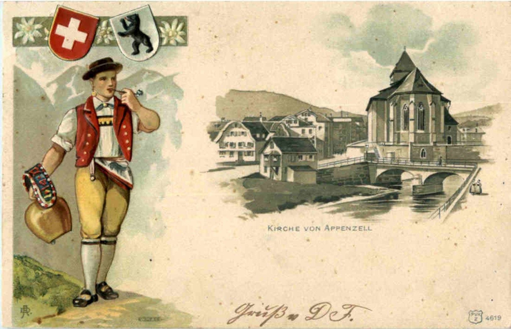 Kirche von Appenzell - Litho Prägekarte