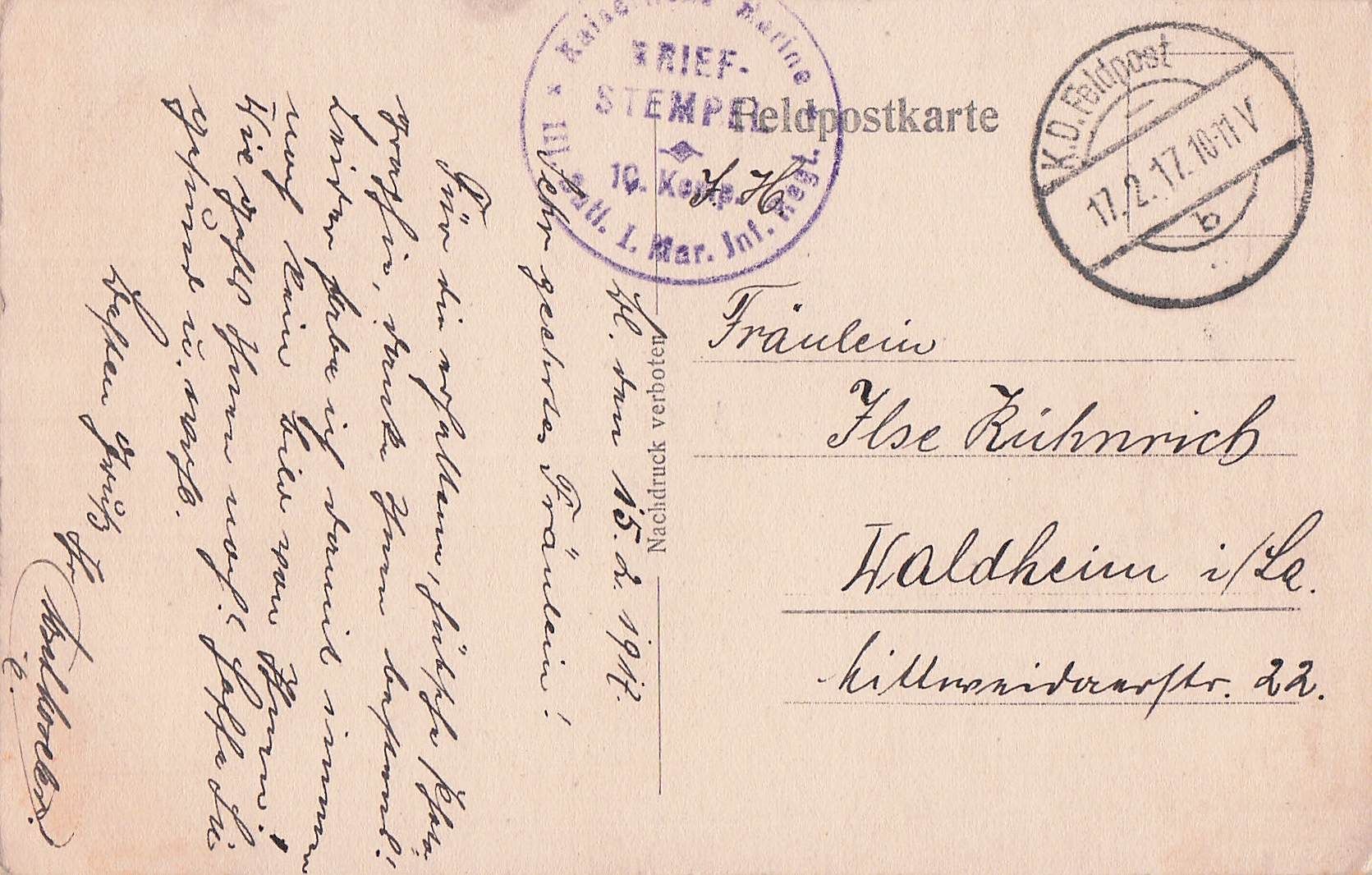 Künstler: A. Polenz (1916) Thema: Seesoldaten im Ersten Weltkrieg