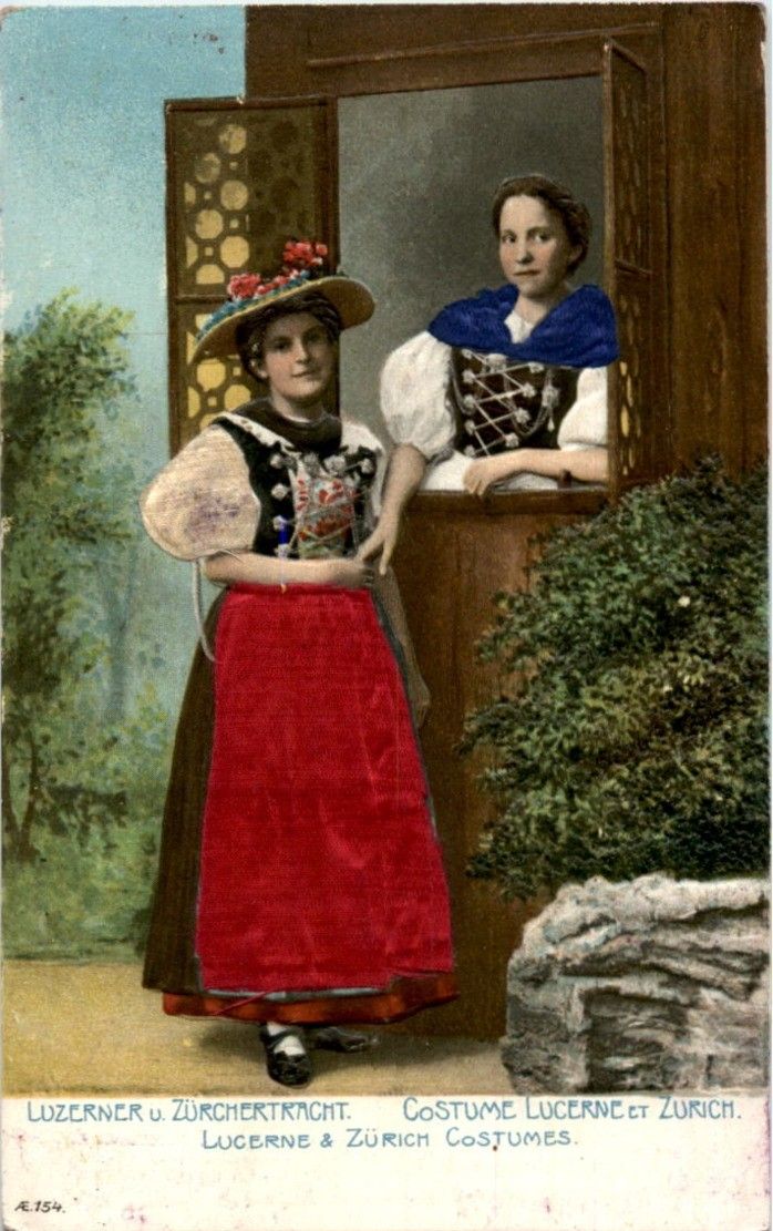 Luzerner und Zürichertracht - Rock aus Seide - Prägekarte