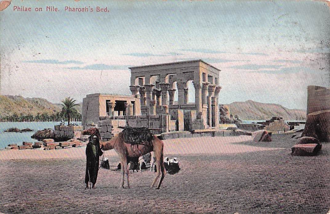Philae, 1910er Jahre, am Nil, Kamel, Pharaos Bett, Ägypten, Vintage-Postkarte