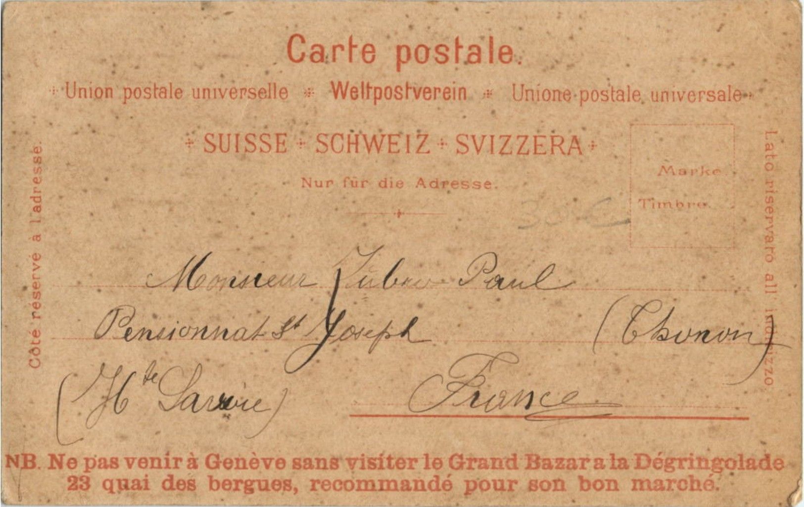 souvenir de Geneve Exposition Nationale 1896