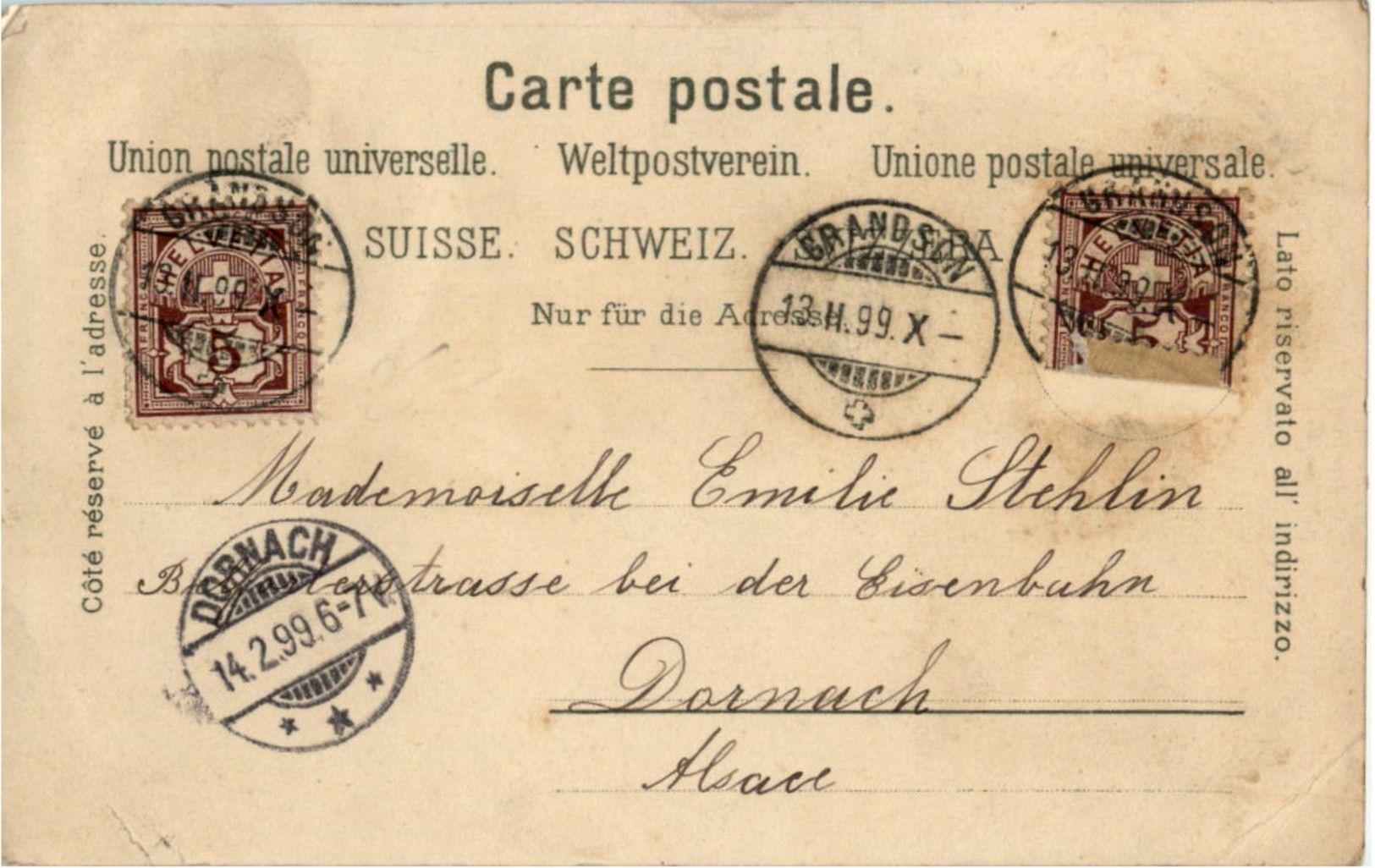 Souvenir des alpes - Postkutsche - Litho