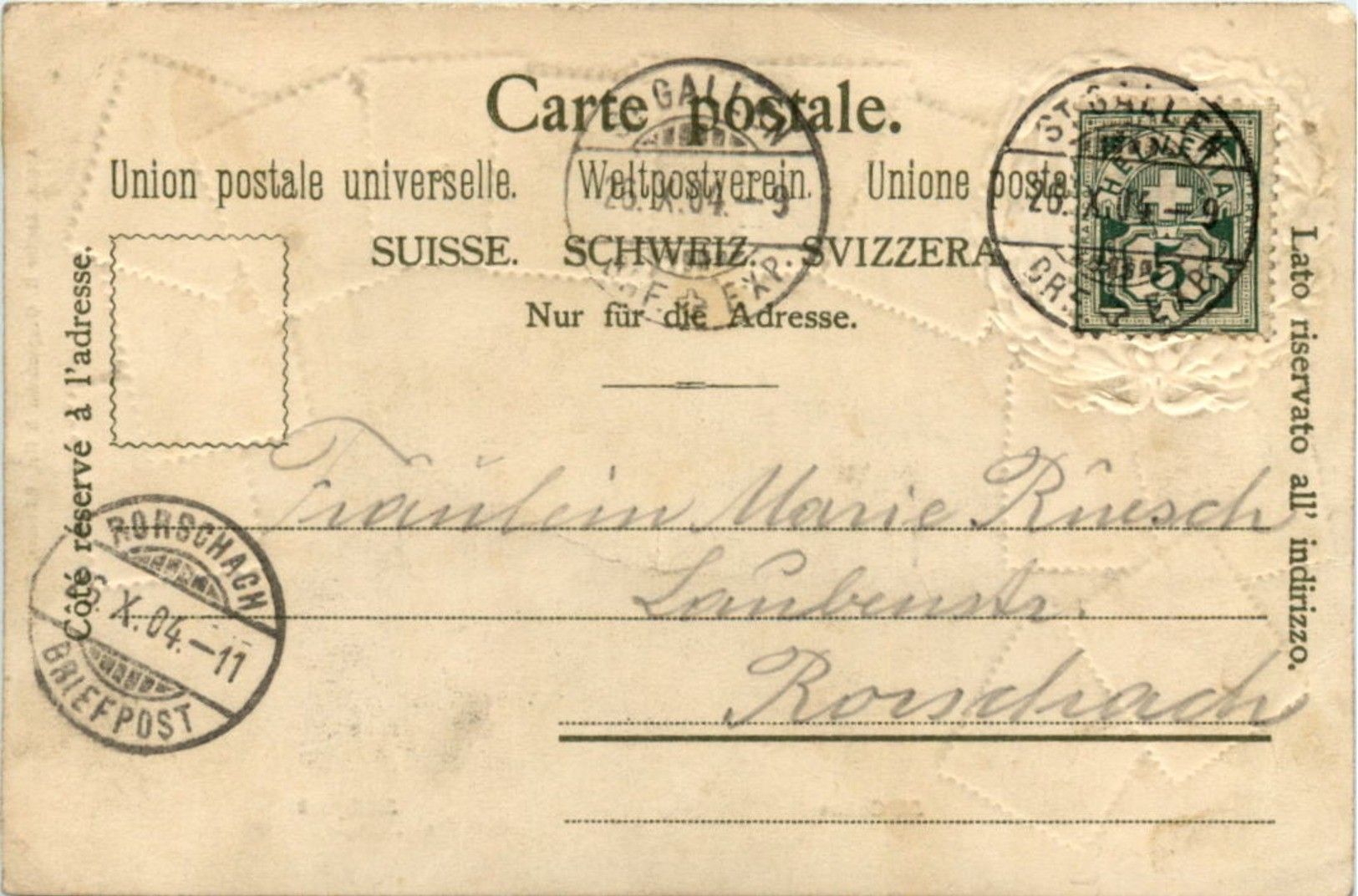 St. Gallen - Stadtpark - Prägekarte Litho