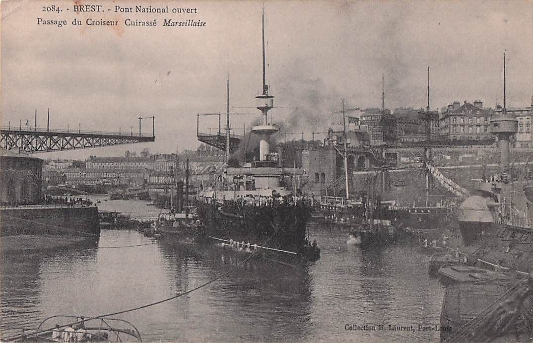 2084. BREST. Pont National ouvert Passage du Croiseur Cuirassé Marseillaise