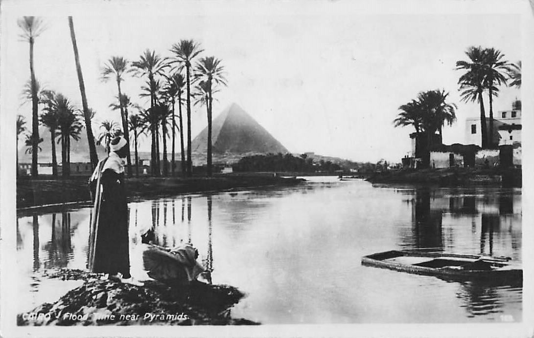 Ak Cairo Kairo Ägypten, Flood Time near Pyarmids, Pyramiden, Palmen
