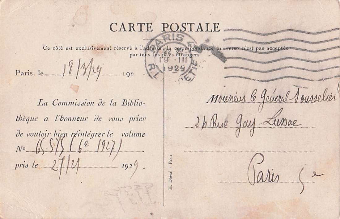 Bibliothekskommission Stempel: Paris, den 18. März 1929.