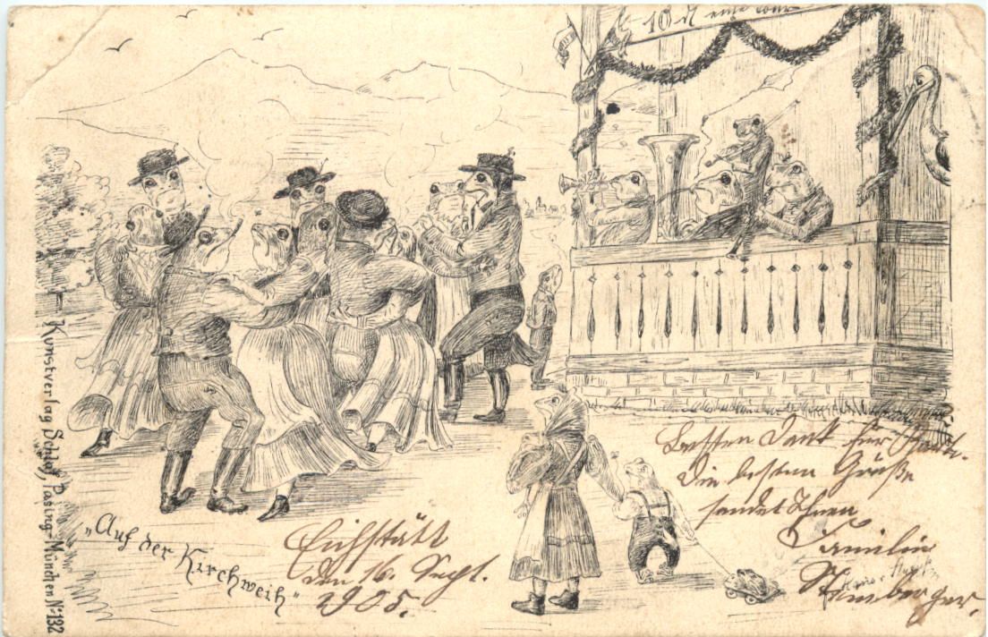 Frösche in Kleidung - Auf der Kirchweih