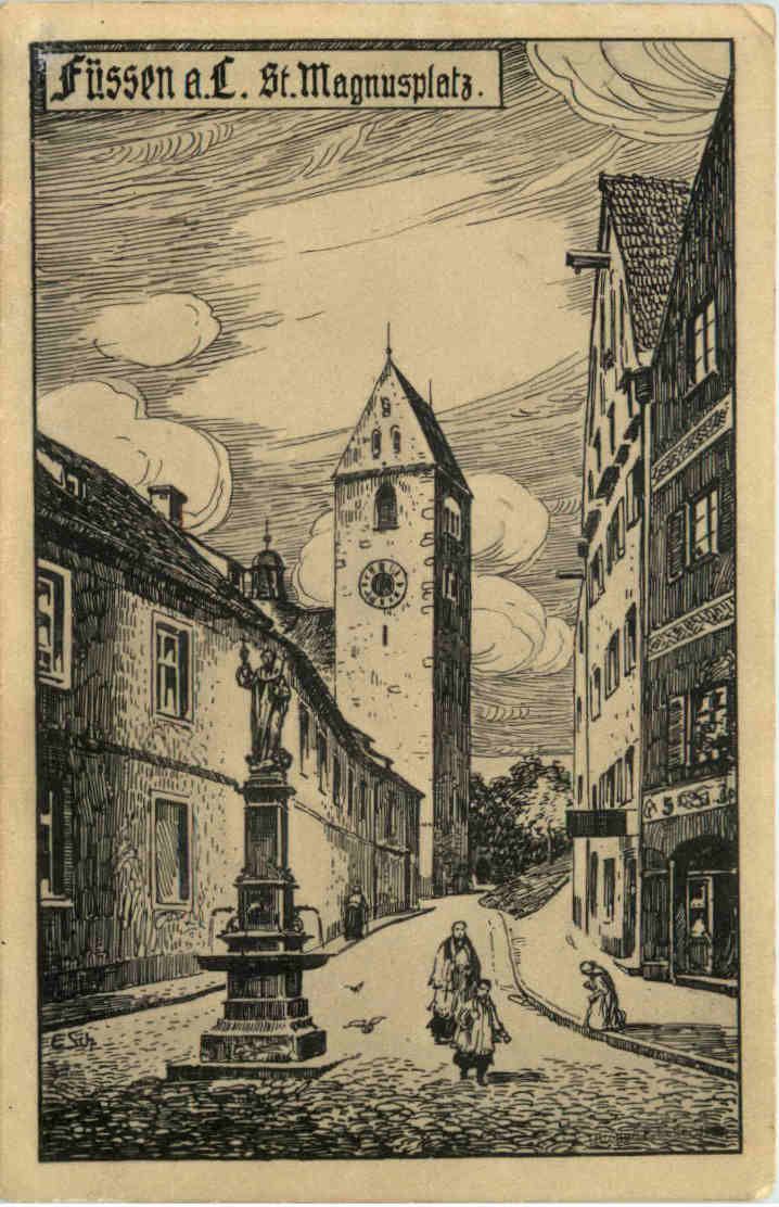 Füssen - St. Magnusplatz - Künstler-AK Eugen Felle