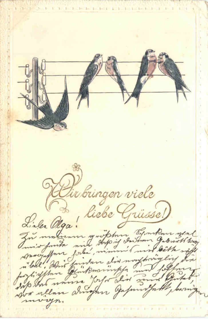 Grüsse - Vögel - Prägekarte