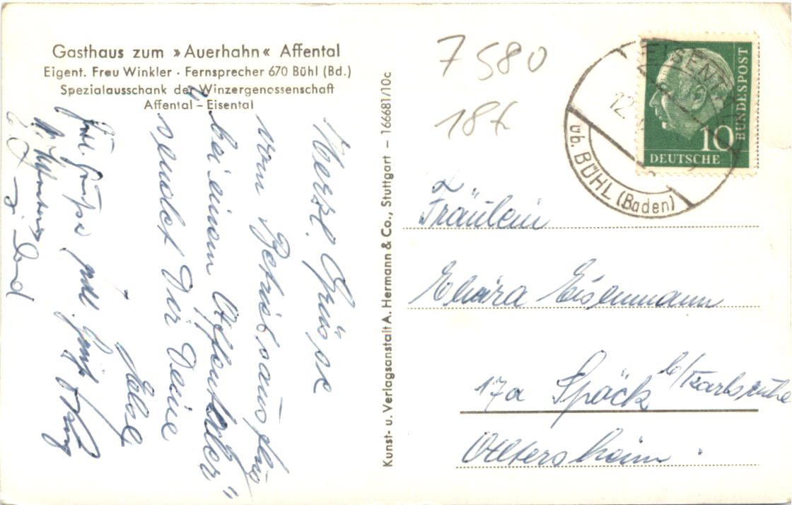 Gruss aus Affental - Gasthaus zum Auerhahn