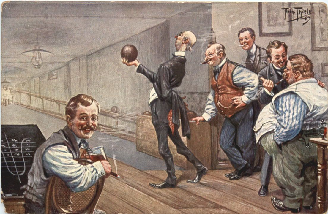 Künstler Ak Arthur Thiele - Kegeln