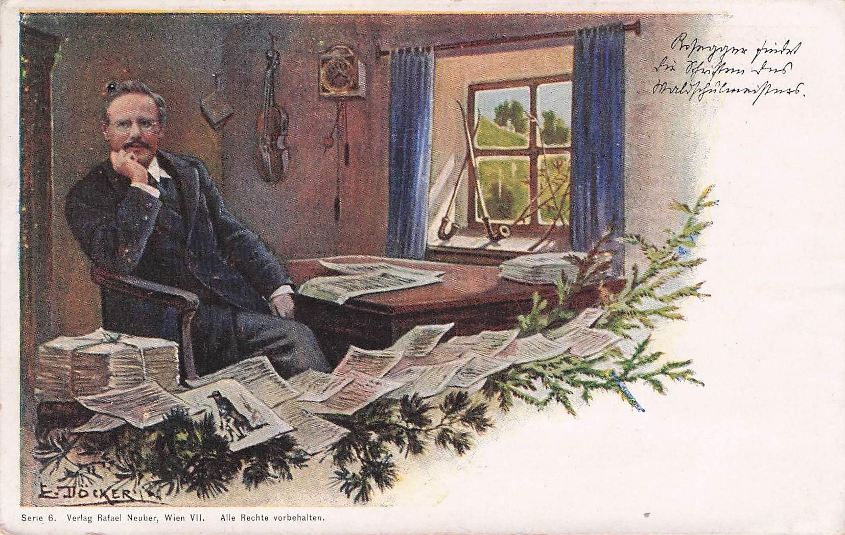 Künstler-AK E. Döcker: Heimatdichter Rosegger in seinem Arbeitszimmer