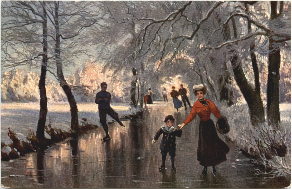 Künstler Ak - Eislaufen