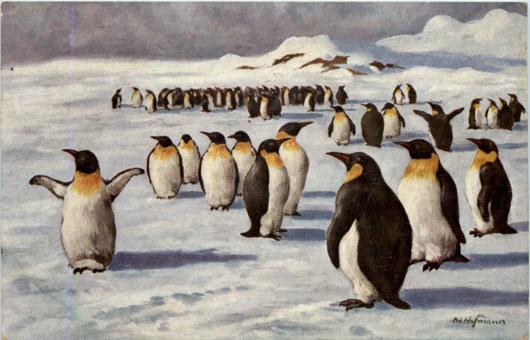 Künstlerkarte Ad. Hoffmann - Pinguine