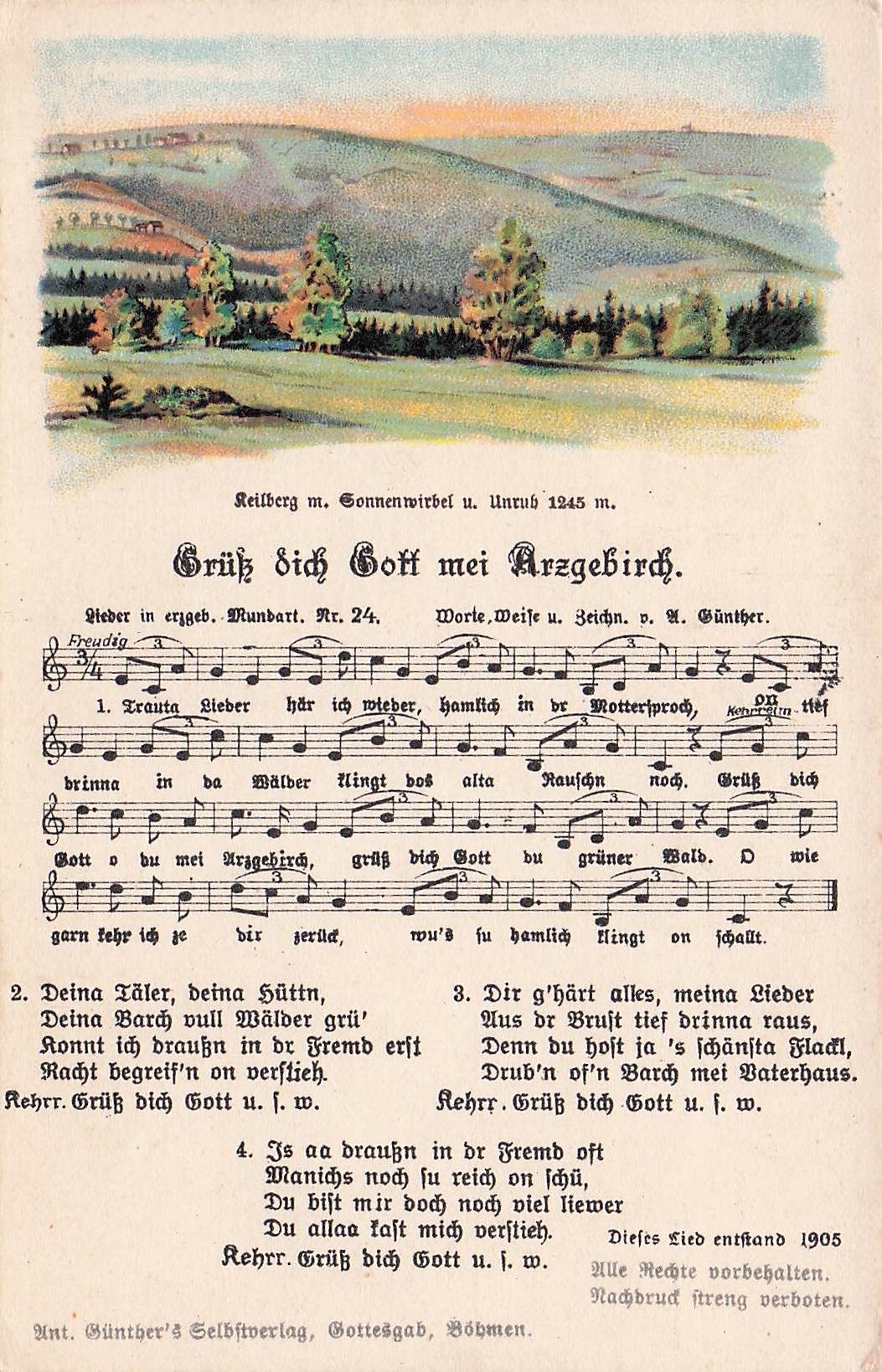Künstlerkarte Anton Günther Lied AK Nr. 24 Grüß dich Gott mein Erzgebirge