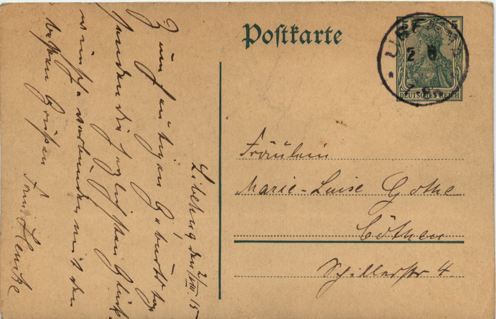 Photo auf Ganzsache geklebt, gelaufen