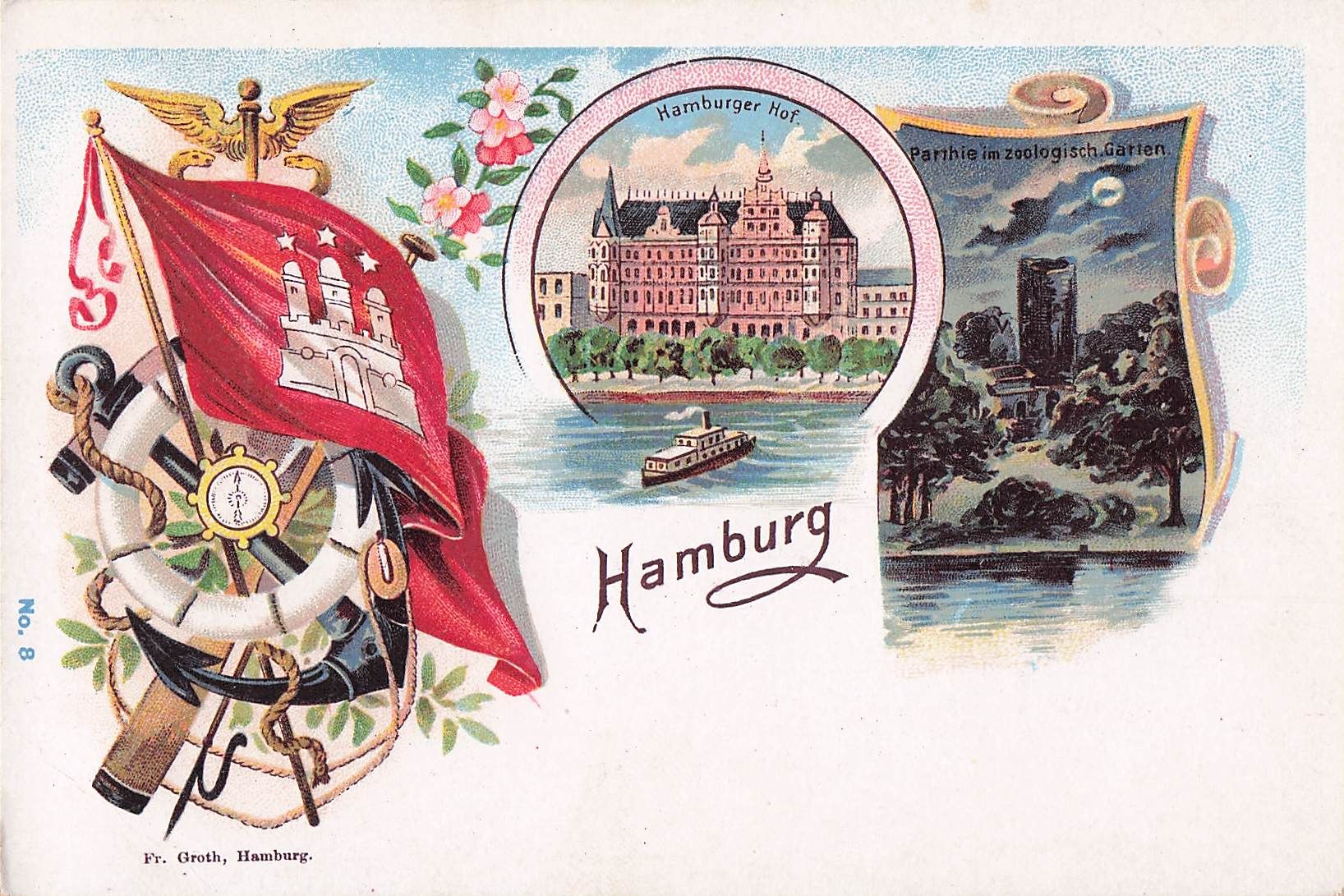 Lithographie Hamburg-Neustadt, Hotel Hamburger Hof mit Dampfer