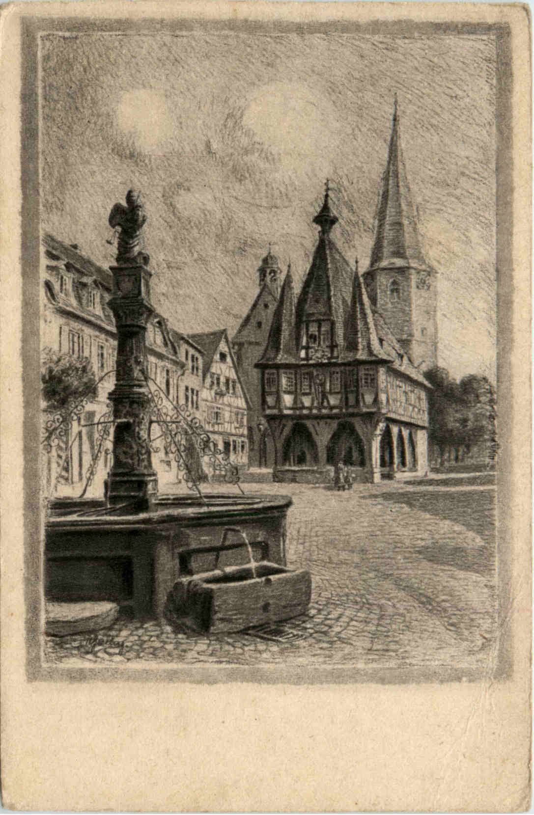 Michelstadt - Rathaus mit Kirche