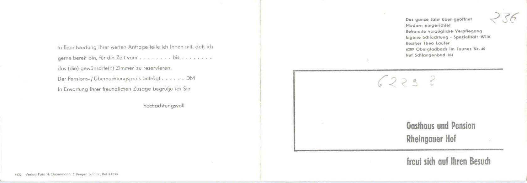 Obergladbach im Taunus - Rheingauer Hof - Klappkarte