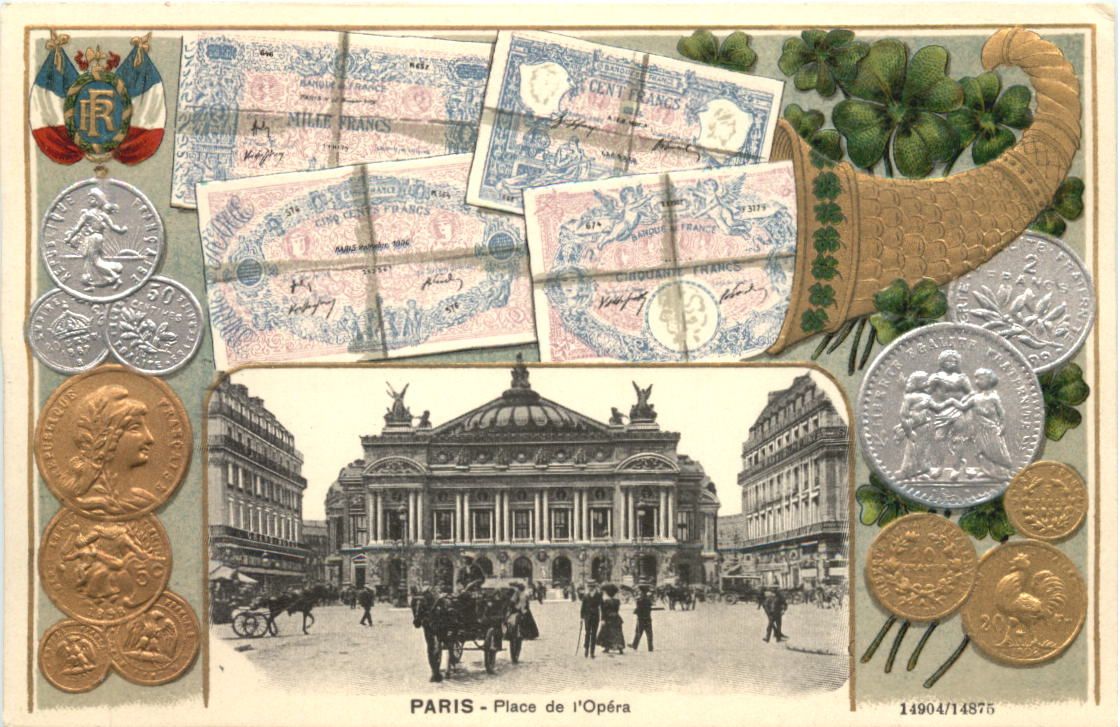 Paris - Place de l Opera - Geld auf Ansichtskarten - Litho