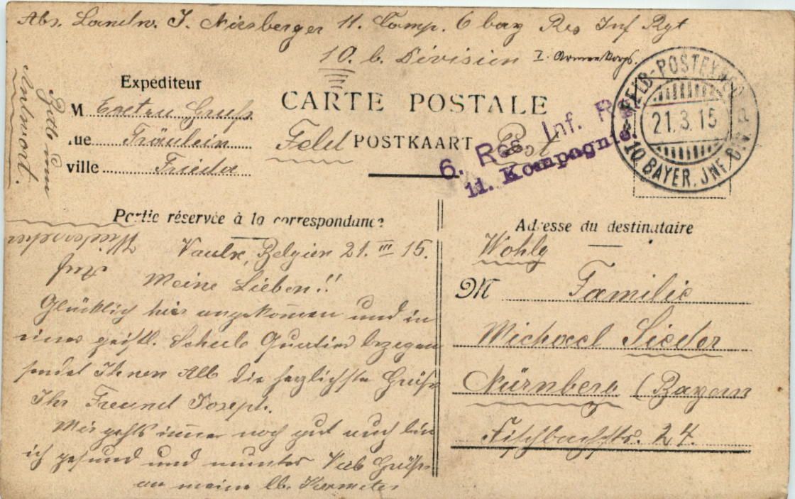 Vaulx - Chemin des Abbiaux - Feldpost 6. Res Inf Regiment