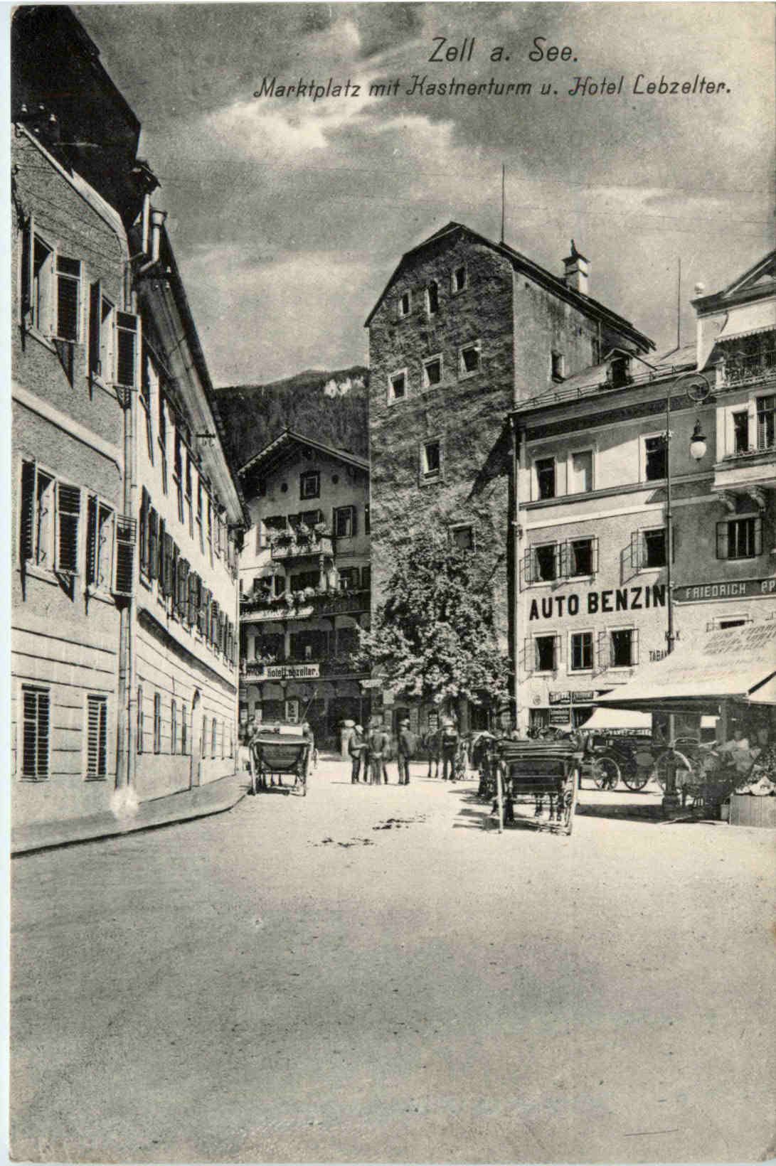 Zell am See, Marktplatz mit Kastnerturm und Hotel Lebzeiter