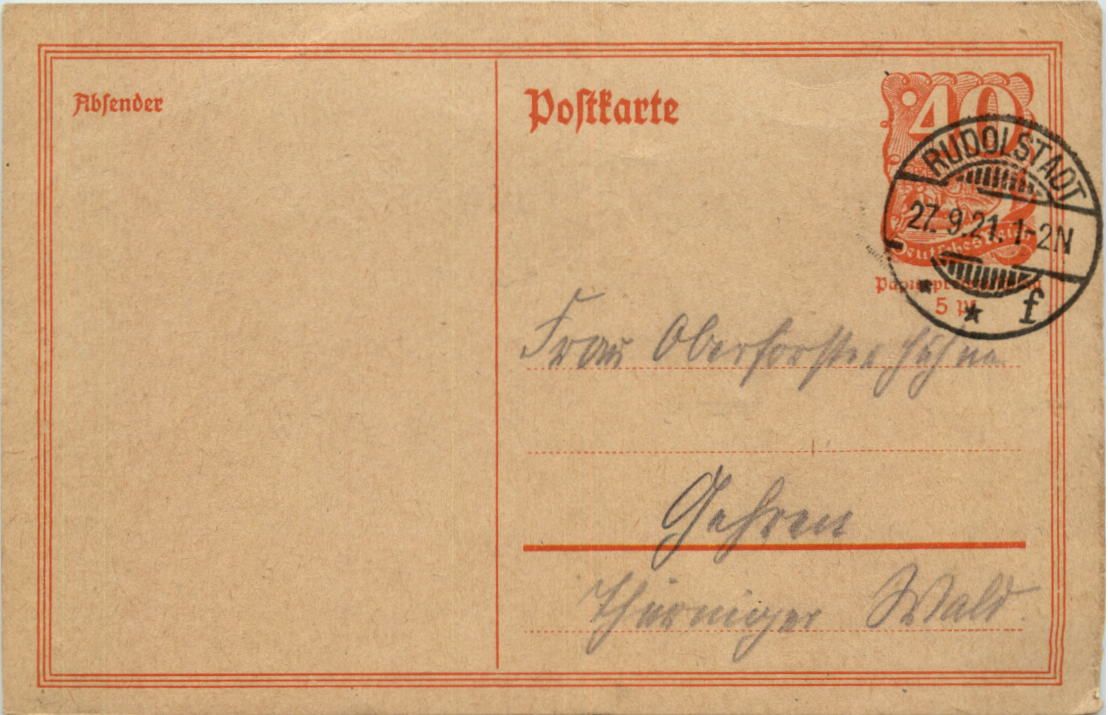 Ganzsache Deutschland Rudolstadt