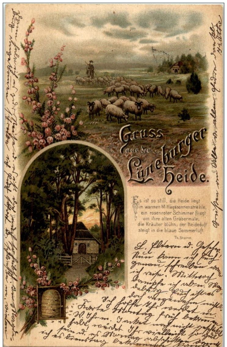 Gruss aus der Lüneburger Heide - Litho -