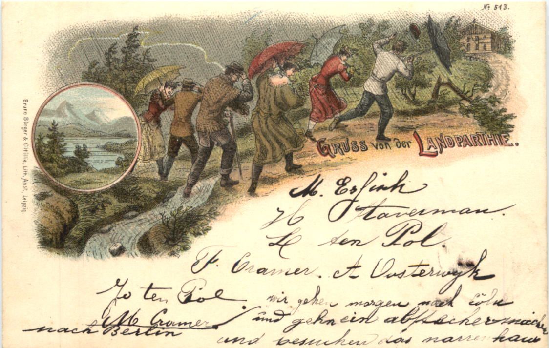 Gruss von der Landpartie - Regen - Litho - Verlag Bürger & Ottillie