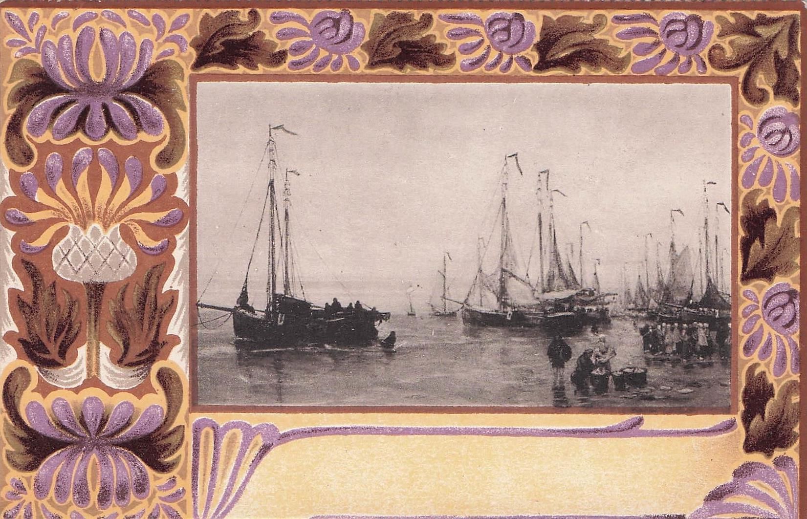 Hafenlandschaft mit mehreren Segelbooten darstellt.