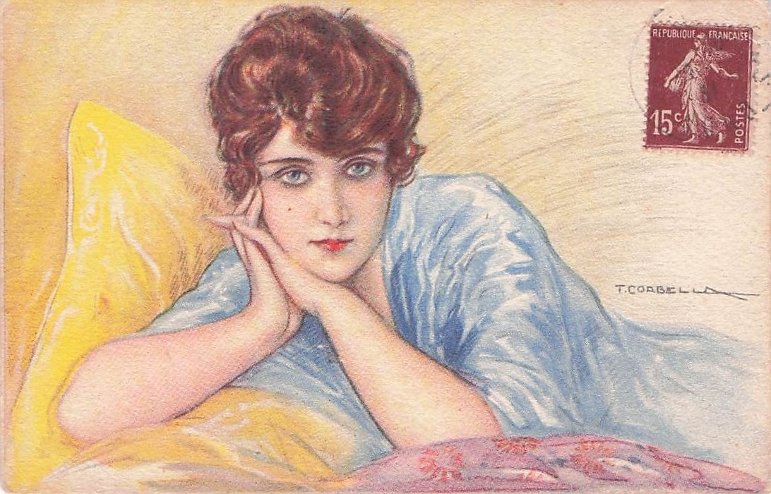 Hübsche Dame Künstler signiert Corbella Italien blaue Augen Mint