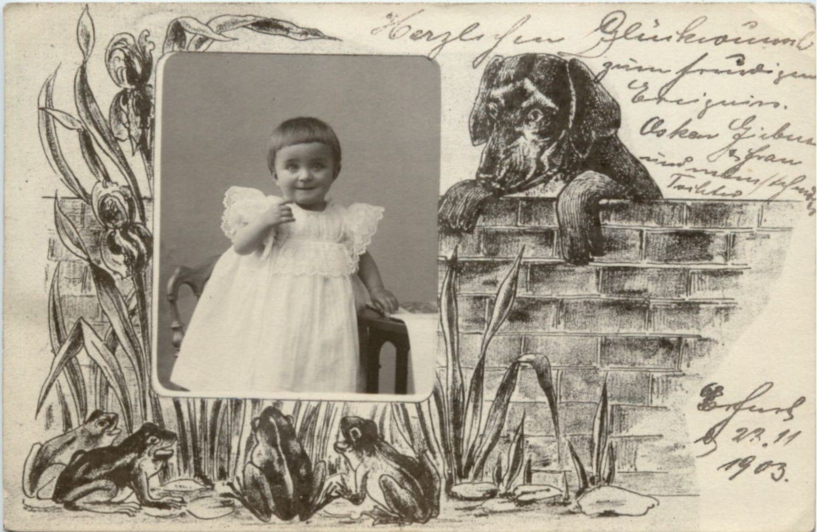 Kind mit Frosch und Hund