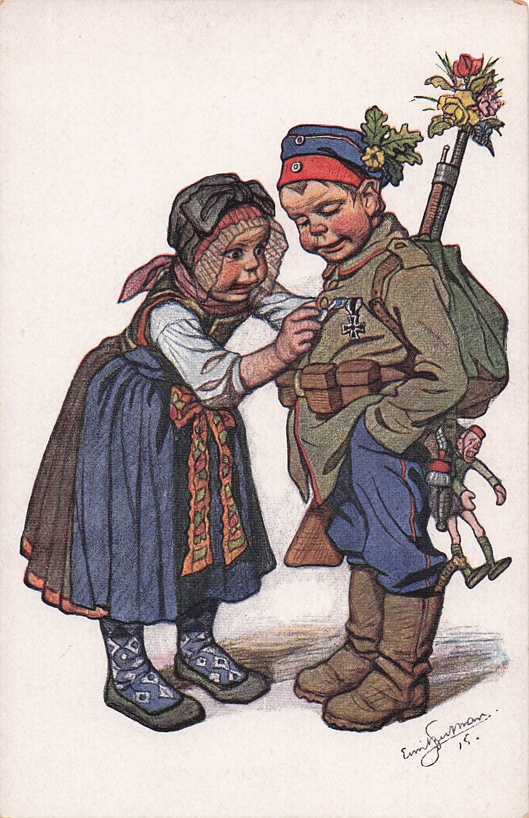 Künstler Ak Beithan, Emil, Frau betrachtet Orden von einem Soldaten, hessische Tracht