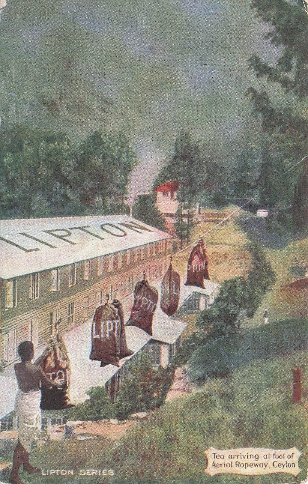Künstler Ak Ceylon, Tea arriving at foot of Aerial Ropeway, Lipton Teefabrik